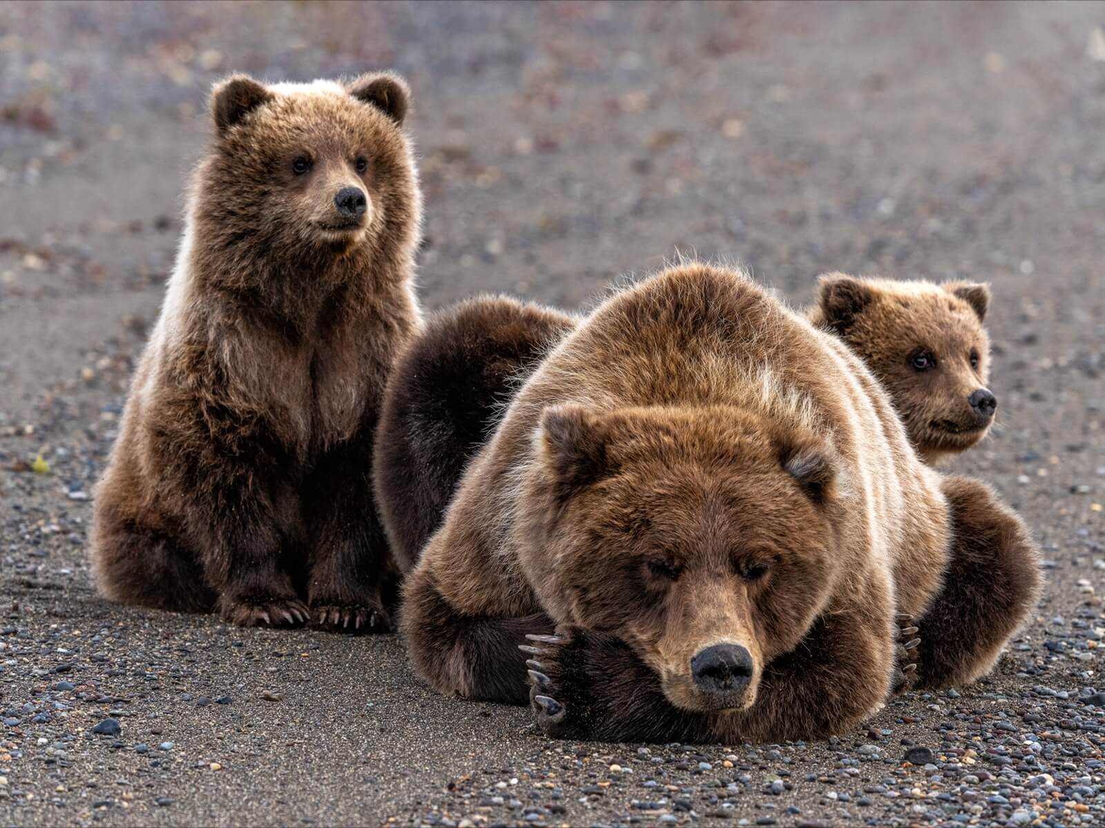 Mother Bear with Cubs on Beach