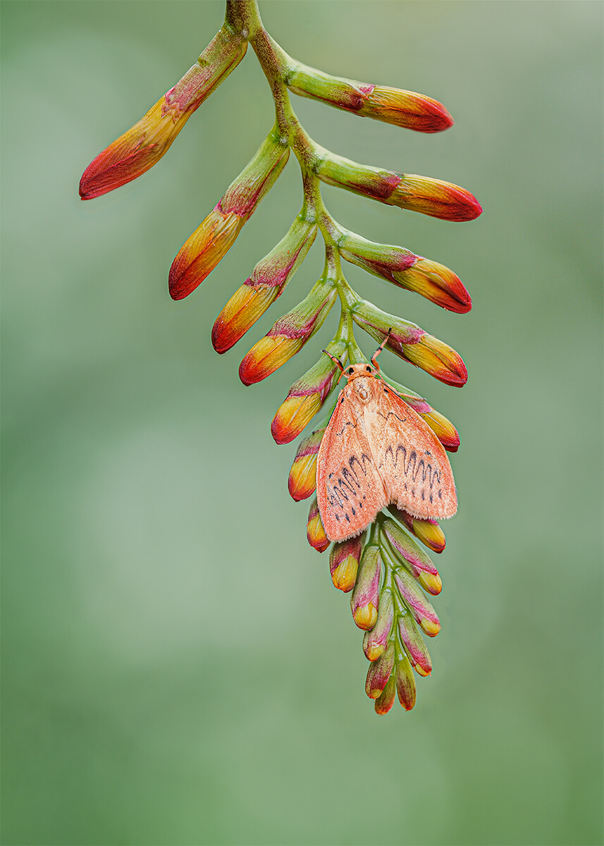 Rosy Footman Moth on Croscosmia